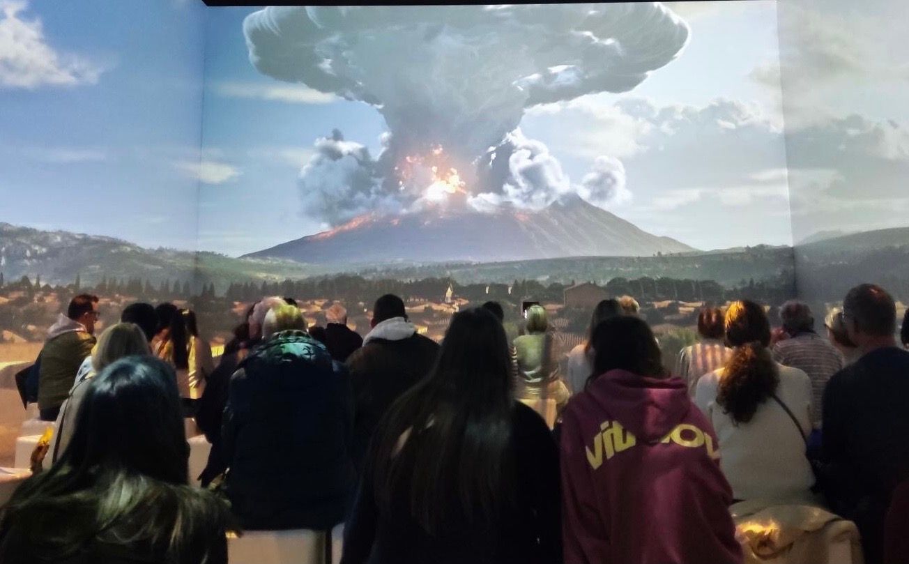 Die Lateingrundkurse der MSS 1 starteten in das neue Jahr mit einem spektakulären Ausflug in die antike Stadt Pompeji, wo sie just den berühmten Vulkanausbruch aus dem Jahr 79 n. Chr. miterleben konnten. Sehr zur Freude ihrer begleitenden Lehrkräfte Theresa Kasperkowitz und Andreas Spika überlebten alle den Vulkanausbruch und konnten am Ende des Tags wohlbehalten wieder in Sprendlingen abgeliefert werden. Am ersten Schultag nach den Weihnachtsferien trafen sich Lehrkräfte und Schüler in der Raumfabrik in Frankfurt, wo die spektakuläre Ausstellung bis zum 18. Januar gastierte. Sie hatten sich im Lateinunterricht vor den Ferien bereits auf den Ausflug vorbereitet und die Geschichte Pompejis studiert. Die Exponate aus der antiken Stadt und einführenden Karten in den ersten Räumen der Ausstellung holten die Schülerinnen und Schüler genau dort ab, wo sie im Unterricht stehen geblieben waren. Etwas bedrückender waren dann die versteinerten Bewohner Pompejis, die nach der Ausgrabung der antiken Stadt im 19. Jahrhundert entdeckt wurden und das schreckliche Ende der Stadt bezeugen. Im nächsten Raum kamen dann technische Mittel zum Einsatz: mithilfe von VR-Brillen konnten die Teilnehmenden die Arena in Pompeji besuchen und einen Gladiatoren- und Tierkampf miterleben. Besonders beeindruckt waren die Besucher hier von einem Tiger, der direkt in Publikum sprang. Während der sich anschließenden Seeschlacht in der Arena (für die antiken Römer technisch möglich und historisch verbürgt), brach dann über den Köpfen der Schülerinnen und Schüler der Vulkan Vesuv aus und beendete die Seeschlacht spektakulär. Den Verlauf des Ausbruchs, bzw. den Untergang der Stadt erlebten die Besucher dann im nächsten Raum, in dem sie in einer Kutsche sitzend, aus der antiken Stadt flohen. Begleitet wurde die Flucht dabei von Erschütterungen des Erdbebens und herabfallenden Gesteinsbrocken. Die Teilnehmenden gruselten sich ziemlich und waren am Ende froh, dem Inferno entronnen zu sein. Die Rückfahrt nach Sprendlingen verlief dann zum Glück gänzlich unspektakulär und friedlich. Insgesamt waren alle Beteiligten beeindruckt und zufrieden mit diesem Start ins neue Jahr.
