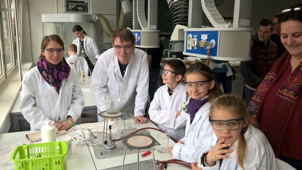 Auch in diesem Jahr durfte die IGS Gerhard Ertl wieder zahlreiche Grundschülerinnen und Grundschüler zu den traditionellen MINT-Schnuppertagen begrüßen. An drei Terminen im Januar erhielten jeweils rund 30 Kinder von 10:00 bis 12:00 Uhr die Gelegenheit, unsere Schule und insbesondere unseren naturwissenschaftlichen Schwerpunkt hautnah kennenzulernen. Organisiert und betreut wurde das Projekt von Herrn Wenzel gemeinsam mit Herrn Deyer. Bereits der Empfang machte deutlich, dass an den Vormittagen echtes Forschen auf dem Programm stand: Die Kinder wurden am Busparkplatz abgeholt und zunächst mit Laborkittel, Schutzbrille und Namensschild ausgestattet. In kleinen Gruppen zu je fünf Schülerinnen und Schülern starteten sie anschließend in unsere hervorragend ausgestatteten Fachräume. Begleitet wurden sie dabei von zwei bis drei Jugendlichen aus den Jahrgangsstufen 9 bis 12, die die Experimente vorbereitet hatten und ihre Gruppen engagiert anleiteten. In den ersten anderthalb Stunden durften die Grundschulkinder selbst experimentieren und naturwissenschaftliche Phänomene aktiv entdecken. So wurde beispielsweise ein „Zauberstein“ imprägniert, von dem Wasser nach der Behandlung einfach abperlte. Große Begeisterung löste auch die nicht-newtonsche Flüssigkeit aus, die sich beim Kneten plötzlich fest anfühlte und sofort wieder verflüssigte, sobald man sie losließ. Beim Versilbern und Vergolden von Cent-Münzen konnten die Kinder chemische Prozesse unmittelbar beobachten und ihre bearbeiteten Münzen anschließend mit nach Hause nehmen. Auch kleine „Raketen“ aus Teebeuteln oder Experimente mit Elektrizität und hochstehenden Haaren sorgten für staunende Gesichter. Viele der hergestellten Produkte wie Geheimschriften oder Steine durften die Kinder als Erinnerung behalten, zudem konnten sie eigene Fotos und Videos ihrer Versuche aufnehmen. Zum Abschluss präsentierten unsere Schülerinnen und Schüler eindrucksvolle Showexperimente. Ob „Elefantenzahnpasta“, eine Knallgasreaktion oder spektakuläre Leucht- und Farbeffekte unter UV-Licht – hier wurde deutlich, wie faszinierend Naturwissenschaft sein kann, wenn Theorie und Praxis zusammenkommen. Ein besonderer Dank gilt den engagierten Schülerinnen und Schülern der Jahrgangsstufen 9 bis 12, die mit großer Verantwortung und Begeisterung die Betreuung übernommen haben. Sie erklärten geduldig, unterstützten beim Experimentieren und waren selbst mit spürbarer Freude bei der Sache. Dieses Engagement zeigt, wie stark der MINT-Gedanke an unserer Schule verankert ist und wie sehr unsere älteren Schülerinnen und Schüler bereit sind, ihr Wissen weiterzugeben. Die Schnuppertage sind seit Jahren ein fester Bestandteil unseres Schulprofils und stoßen bei Kindern und Eltern auf sehr positive Resonanz. Gerade weil an vielen Grundschulen naturwissenschaftliches Experimentieren nur eingeschränkt möglich ist, bieten wir mit unseren modern ausgestatteten Fachräumen und zusätzlichen MINT-Angeboten ab Klasse 5 – etwa im vertiefendem Laborunterricht in der Natex-AG – ideale Bedingungen für neugierige und forschungsbegeisterte Kinder. Die Schnuppertage geben einen lebendigen Einblick in diese Möglichkeiten und zeigen, dass junge Naturwissenschaftlerinnen und Naturwissenschaftler an der IGS Gerhard Ertl bestens aufgehoben sind.