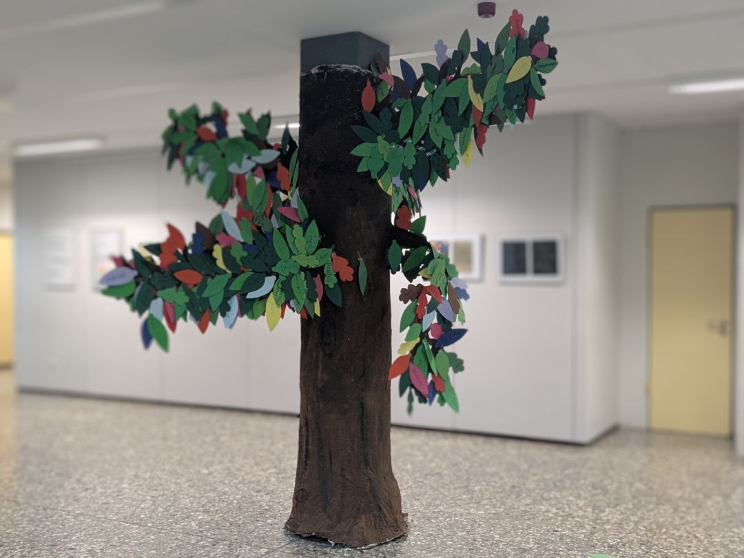 Am 21.02. ist der internationale Tag der Muttersprache, den wir auch in der IGS Gerhard Ertl zelebrieren wollen. Seit Kurzem steht in der Pausenhalle ein großer Baum, dessen Äste bunte Blätter schmücken, auf denen die Muttersprachen der Schülerinnen und Schüler sowie der Lehrkräfte verewigt sind. Neben dem Deutschen und deutschen Dialekten gibt es bei uns an der IGS Gerhard Ertl 34 unterschiedliche Muttersprachen! Muttersprache ist in der Wissenschaft ein umstrittener Begriff, da er nicht allumfassend ist. Was ist etwa, wenn ein Kind (auch) die Sprache des Vaters lernt, wenn die erlernte Sprache die der Umgebung ist und nicht die Erstsprache der Eltern, ist es nicht neutraler von Erst- oder Herkunftssprache zu sprechen? Das trifft für eine wissenschaftliche Verwendung des Begriffs natürlich zu. Trotzdem möchten wir ganz unwissenschaftlich heute die Muttersprache feiern, die für Familie, Heimat, Geborgenheit und Sicherheit steht. Sprecher der 34 Sprachen sind auf dem europäischen, afrikanischen, asiatischen und amerikanischen Kontinent und natürlich an der IGS Gerhard Ertl Zuhause. Unterschiedliche Grammatiken und Schriftsysteme gehören hier ebenso dazu wie komplexe Lautsysteme. Sprache ist Zugehörigkeit und eröffnet eine Sicht auf die Welt, die in einer anderen Sprache ebenfalls unterschiedlich ist. Hier noch ein paar Daten zu den Muttersprachen unserer Schüler, Schülerinnen und Lehrkräfte: Die drei ältesten Sprachen, die an der IGS gesprochen werden, sind Arabisch (3000 Jahre), Griechisch (3000 Jahre) sowie Farsi (2600 Jahre), die jüngsten Sprachen Igbo und Lingala sind gerade mal 200 Jahre alt, wobei diese Datierung auch recht ungenau und wenig verlässlich ist. Die meisten Sprecher weltweit hat das Englisch (1,45 Mrd), dann folgt das Spanische (485 Mio) und Hindi (370 Mio). Und nun noch einmal zum Sprachenbaum: er zeigt, wie reich und vielfältig wir hier an unserer Schule sind. Unterschiedliche Sprachen werden oft als Problem dargestellt, tatsächlich führen sie aber oft dazu, dass Probleme aus dem Weg geräumt werden, dass Sachverhalte aus unterschiedlichsten Perspektiven und Blickwinkeln betrachtet werden können – wenn wir gemeinsam daran arbeiten. Daran soll uns der Sprachenbaum – jedenfalls bis Ende dieses Schuljahres, erinnern. Ein großesDankeschön an dieser Stelle an die großartige Frau Wenz und den noch großartigen 11er BK-Leistungskurs, der diesen Baum in vielen Stunden aufgebaut hat, vielen Dank an die tolle Frau Nedzelska, die in mühevoller Kleinstarbeit die Blätter für den Baum akkurat ausgeschnitten hat und vielen, vielen Dank an all die Schülerinnen und Schüler, die mit uns gemeinsam den Baum „beblättert“ haben. Und zum Schluss eine großes, von Herzen kommendes Dankeschön an die gesamte Schulgemeinschaft, dass sie an diesem Projekt teilgenommen und mitgemacht haben – ich mag mich wiederholen, aber: Ihr seid toll!