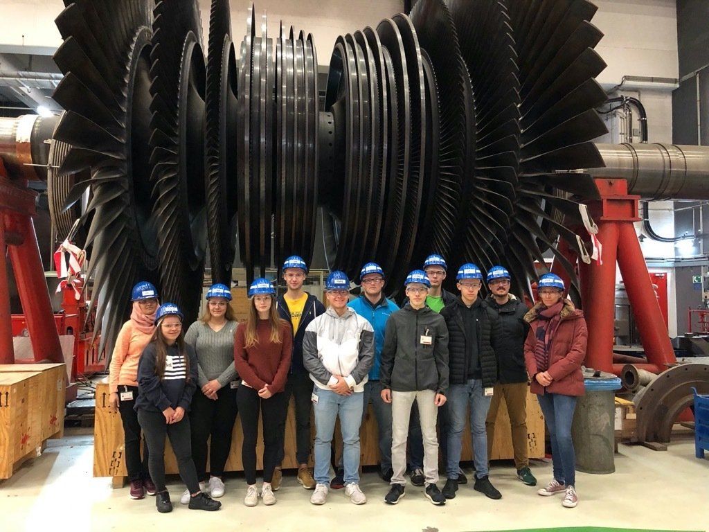 Die Exkursion begann im Besucherzentrum mit einem kleinen Vortrag von Alexander Scholl (Öffentlichkeitsarbeit Biblis), welcher u.a. die oben genannten Fragen beantwortete. Nach einer kleinen Stärkung machte sich die Gruppe mit Helm und Schutzbrille ausgestattet auf den Weg zum Kraftwerksgelände. Hier wurde fleißig am Abbau der Anlage gearbeitet. Neben den riesigen Stromgeneratoren konnten die Schüler auch einen Blick auf die vielzähligen anderen Maschinen erhaschen, die für die Stromgewinnung unerlässlich sind.