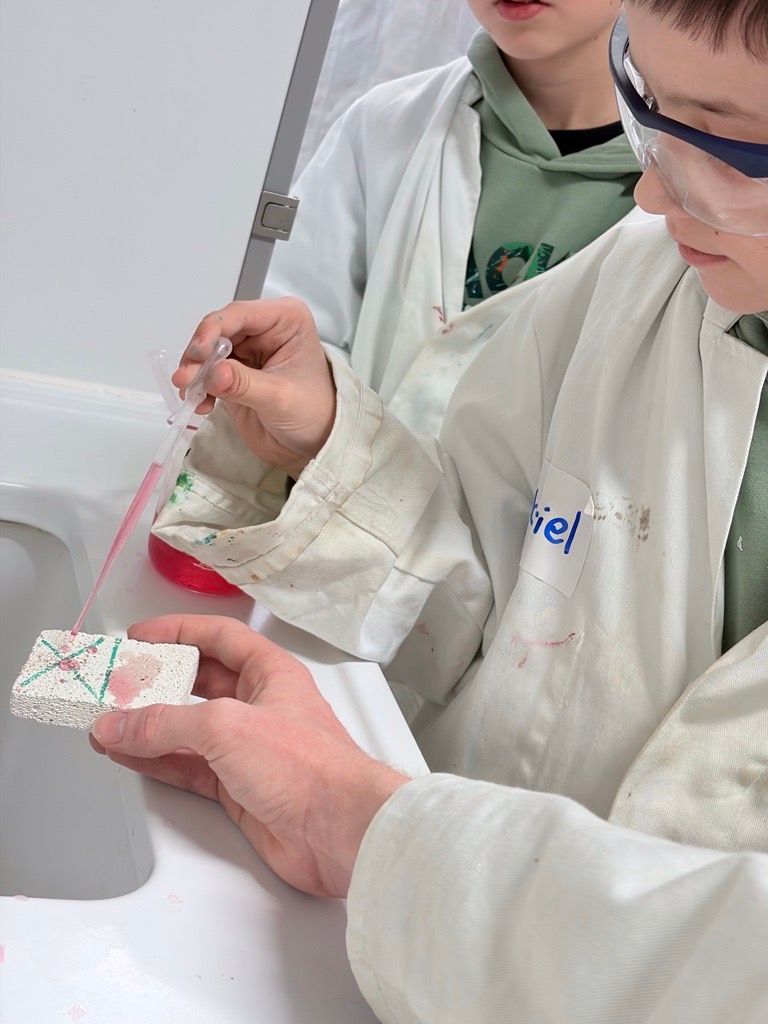 Ebenfalls im Neubau arbeiteten die Schülerinnen und Schüler mit einem „Geschichtskoffer“, der den Lageralltag anhand konkreter Gegenstände erfahrbar machte. Ein Rasierer stand für den entwürdigenden „Hinzert-Haarschnitt“, Werkzeuge symbolisierten die schwere Zwangsarbeit im Wald und im Steinbruch und Lumpen verdeutlichten die unzureichende Kleidung der Häftlinge. Eine Dachpappe mit Teer verwies auf den extremen Hunger, der Gefangene dazu brachte, selbst solche Materialien zu essen. Ein Ring symbolisierte die letzte Verbindung zur Familie, die bei der Inhaftierung häufig verloren ging. Eine Hundefigur machte das erschütternde Missverhältnis zwischen der Behandlung der Wachhunde und dem Leid der Häftlinge deutlich.