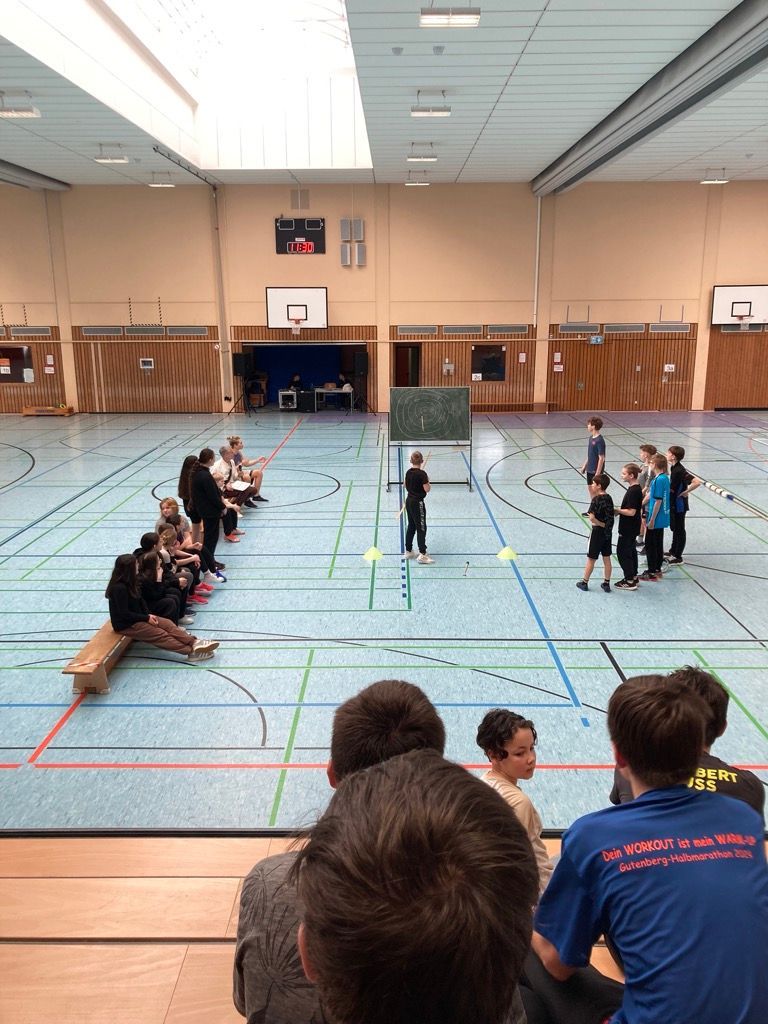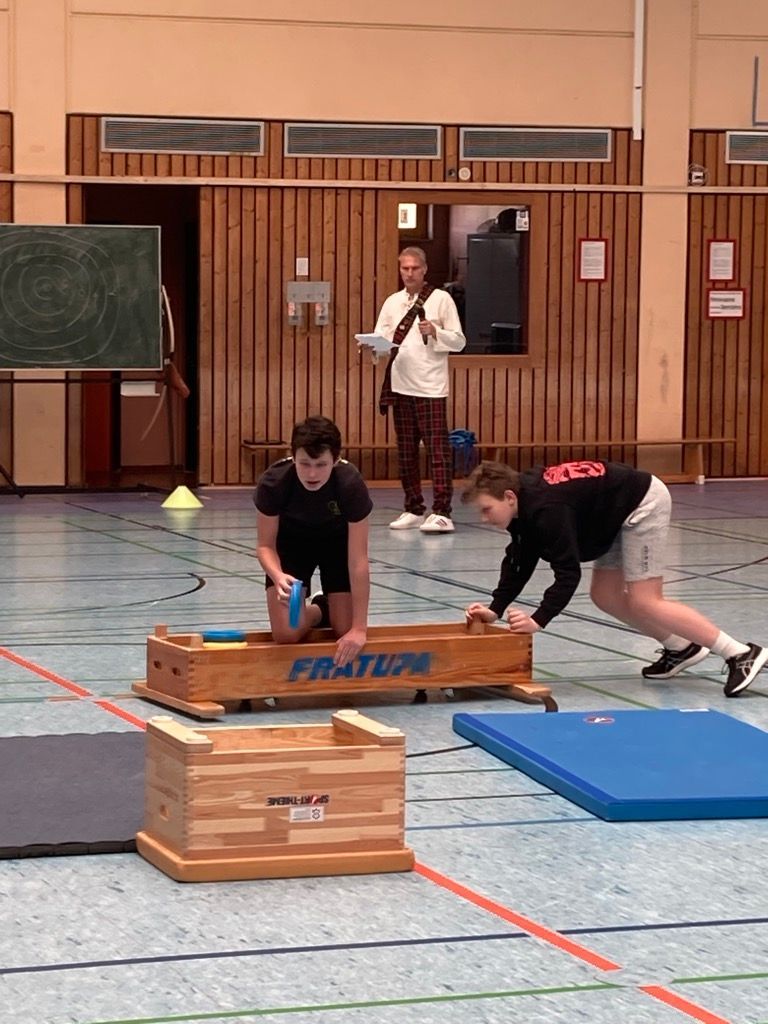 Tolle Stimmung herrschte am 27. Februar 2025 in der Sporthalle der IGS Gerhard Ertl, in der sich die vier siebten Klassen zu den traditionellen schottischen Highland Games versammelt hatten. Angelehnt an das aktuelle Thema des Englischunterrichts hatten sich die beiden Sporttutoren Harald Brandenburg und Philipp Selig (der leider krankheitsbedingt ausfallen musste) zahlreiche spannende und witzige Challenges überlegt, in denen Teams aus den vier Klassen gegeneinander antraten.