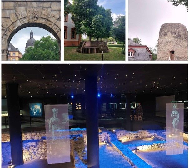Nach eigener Anreise zum Hauptbahnhof besichtigten die Lateiner zunächst das Hypocaustum in der Nähe vom Schillerplatz. Diese Nachbildung zeigt eine römische Fußbodenheizung, mit der die sonnenverwöhnten Römer es sich im zugigen Germanien gemütlich machten. Zweite Station war der Dativius-Victor-Bogen in der Nähe des Mainzer Schlosses. Dieser antike Ehrenbogen ist nicht dem 3. Fall (Dativ) gewidmet, sondern vom Ratsherr Dativius Viktor zu Ehren von Kaiser und dem Gott Jupiter im 3. Jahrhundert nach Christus errichtet worden. Bemerkenswert sind die Tierkreiszeichen im inneren Bogen, die die von den Schülerinnen und Schülern einwandfrei identifiziert werden konnten. Nach einem kurzen Abstecher zum Rhein, an dem auch die Römer eine Brücke gebaut hatten, besuchte die Gruppe den Isistempel in der Römerpassage, der die Teilnehmenden mit neuem zusätzlichen Licht- und Farbkonzept noch überzeugender in die antiken Mysterienkulte der Isis und der Mater Magna eintauchen ließ.