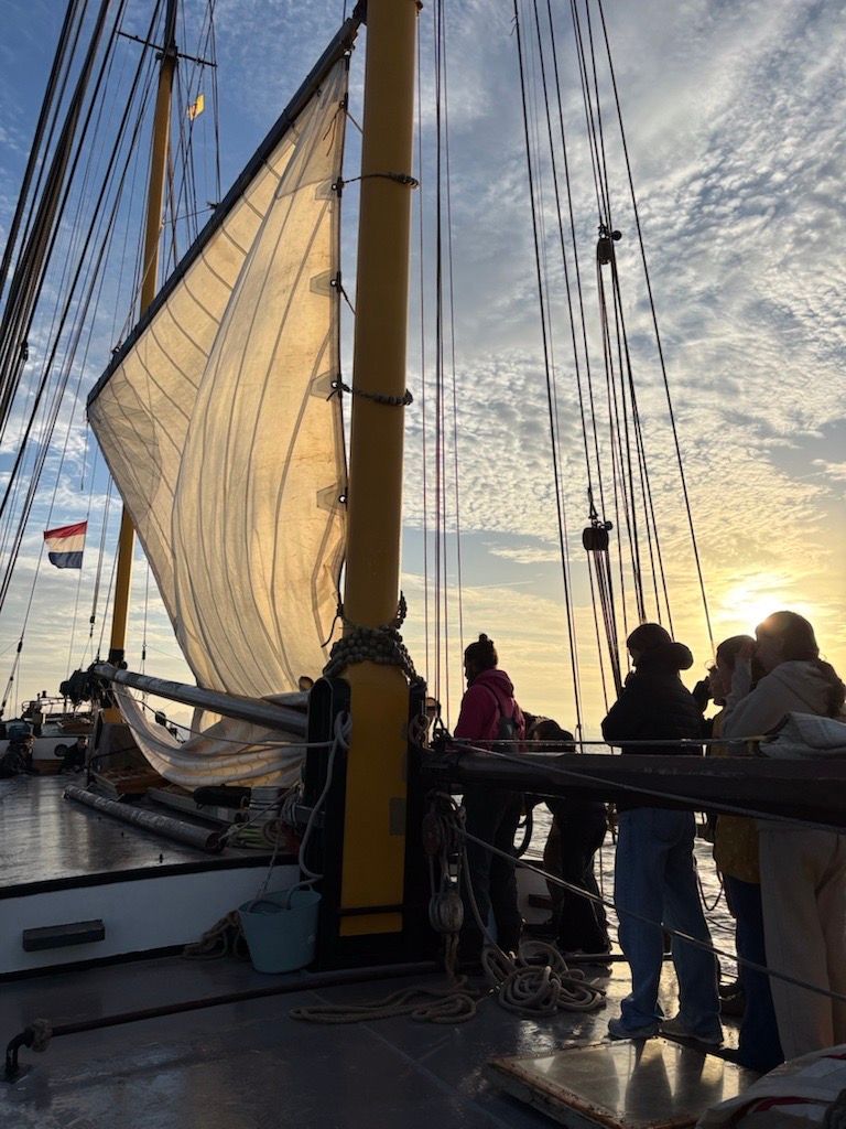 Vom 6. bis 10. Oktober 2025 begaben sich die neunten Klassen gemeinsam mit ihren Tutorinnen und Tutoren auf eine Klassenfahrt zum IJsselmeer in den Niederlanden. Die Fahrt stand ganz im Zeichen des Teamgeists, der Zusammenarbeit und zahlreicher gemeinsamer Erlebnisse auf hoher See. Am Montagmorgen starteten die Busse pünktlich um 8:00 Uhr in Sprendlingen. Am Nachmittag erreichten die Schülerinnen und Schüler den Hafen von Harlingen, wo die Schiffe bezogen wurden. Die anfängliche Überraschung über die begrenzten Platzverhältnisse in den Kabinen und die überschaubare Anzahl an sanitären Einrichtungen wich schnell der Vorfreude auf die bevorstehenden Tage. Nach einem gemeinsamen Abendessen, das von einer Schülergruppe zubereitet wurde, endete der erste Tag in entspannter Atmosphäre. Der Dienstag stand im Zeichen des ersten Segeltörns. Ziel war die Insel Terschelling, eine der westfriesischen Inseln. Unter Anleitung der Schiffsbesatzung lernten die Schülerinnen und Schüler die grundlegenden Handgriffe des Segelns, setzten gemeinsam die Segel und übernahmen erste Aufgaben bei der Navigation und Steuerung. Trotz wechselhaften Wetters herrschte eine ausgelassene Stimmung. In Terschelling angekommen, nutzten viele die Gelegenheit zu einem Stadtbummel, zum Einkaufen und zum Erkunden der Umgebung. Der zweite Abend verlief ruhig und harmonisch. Am Mittwoch führte die Route weiter nach Makkum in der Provinz Friesland. Der Umgang mit den Segeln und den Manövern verlief zunehmend routinierter, und einige Teilnehmende zeigten beachtliches Talent im praktischen Umgang mit dem Schiff. Das Wetter blieb zwar kühl und wechselhaft, doch tat dies der guten Stimmung keinen Abbruch. Besonders wagemutige Schülerinnen und Schüler wagten sogar ein kurzes Bad im IJsselmeer bei einer Wassertemperatur von etwa acht Grad Celsius. Am Abend sorgte ein musikalischer Wettbewerb zwischen Lehrkräften und Schülergruppen für gute Unterhaltung und trug zu einem lebhaften Gemeinschaftsgefühl bei. Am Donnerstag traten die Gruppen die Rückfahrt nach Harlingen an. Ein besonderes Erlebnis war die Durchfahrt durch die Schleuse, die vielen eindrucksvoll in Erinnerung blieb. Der letzte Abend an Bord bot Gelegenheit, die gemeinsamen Erlebnisse Revue passieren zu lassen und die Gemeinschaft noch einmal zu stärken. Am Freitagmorgen erfolgte schließlich die Rückreise nach Sprendlingen. Nach einer pünktlichen Abfahrt und einer reibungslosen Fahrt erreichte die Gruppe am Nachmittag wieder die Heimat. Die Segelwoche auf dem IJsselmeer wird allen Teilnehmenden in bester Erinnerung bleiben. Sie bot nicht nur spannende Einblicke in das Leben an Bord und die Grundlagen des Segelns, sondern stärkte auch die Klassengemeinschaft und den Zusammenhalt innerhalb des gesamten Jahrgangs nachhaltig.