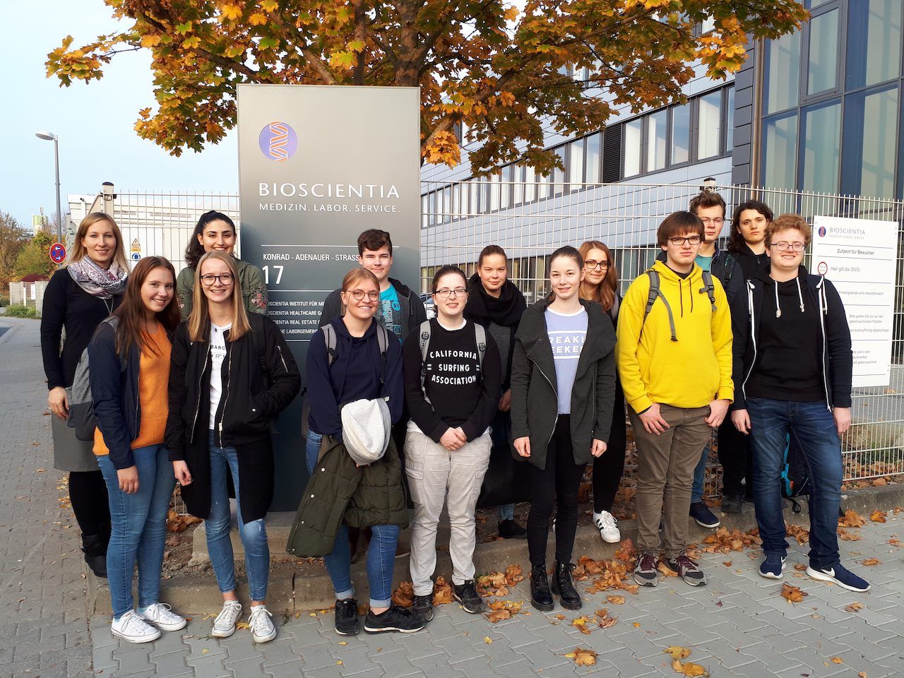Angewandte Wissenschaft kennenlernen - das war das Ziel der MSS Chemiekurse in Ingelheim. Mit ihren Lehrern Alexandra Kunz und Tim Renker besuchten die Schülerinnen und Schüler - nein, ausnahmsweise nicht das große Pharmaunternehmen-, sondern die Labore der Bioscientia GmbH.